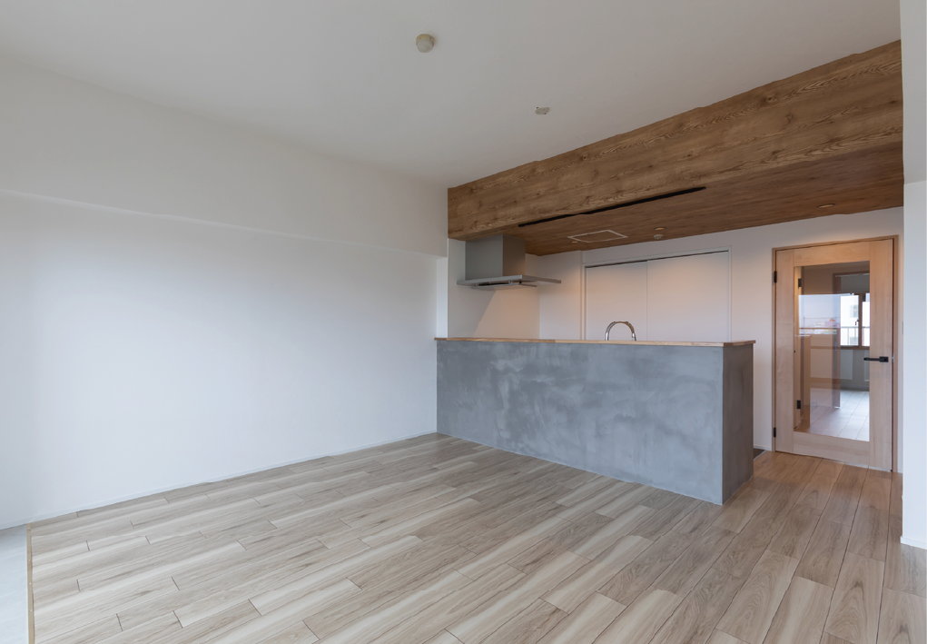 TOP > 施工事例 > モルタルと木目が映える、40代夫婦が本当に好きと言える空間づくり